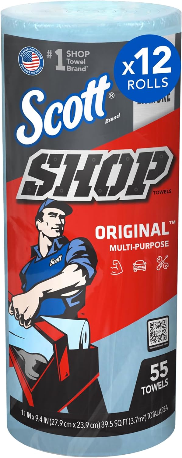 Scott 75147 Shop Towels, Standard Roll, 10 2/5 x 11, Blue, 55/Roll, 12 Rolls/Carton